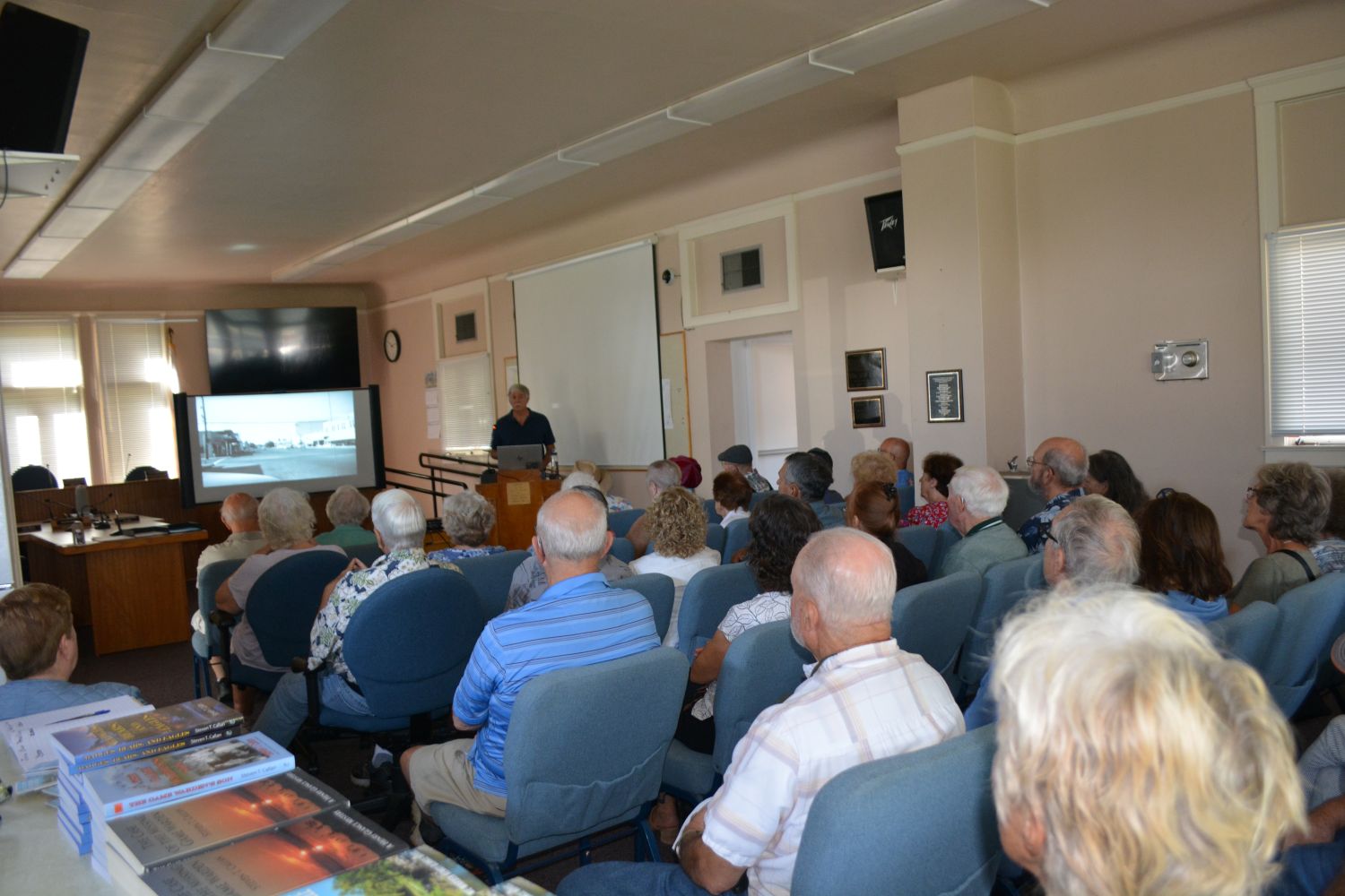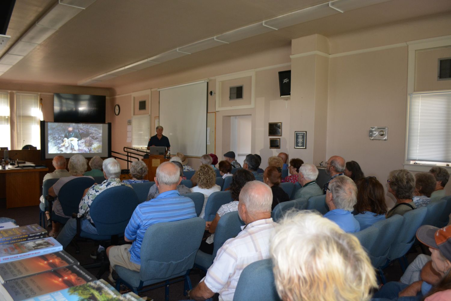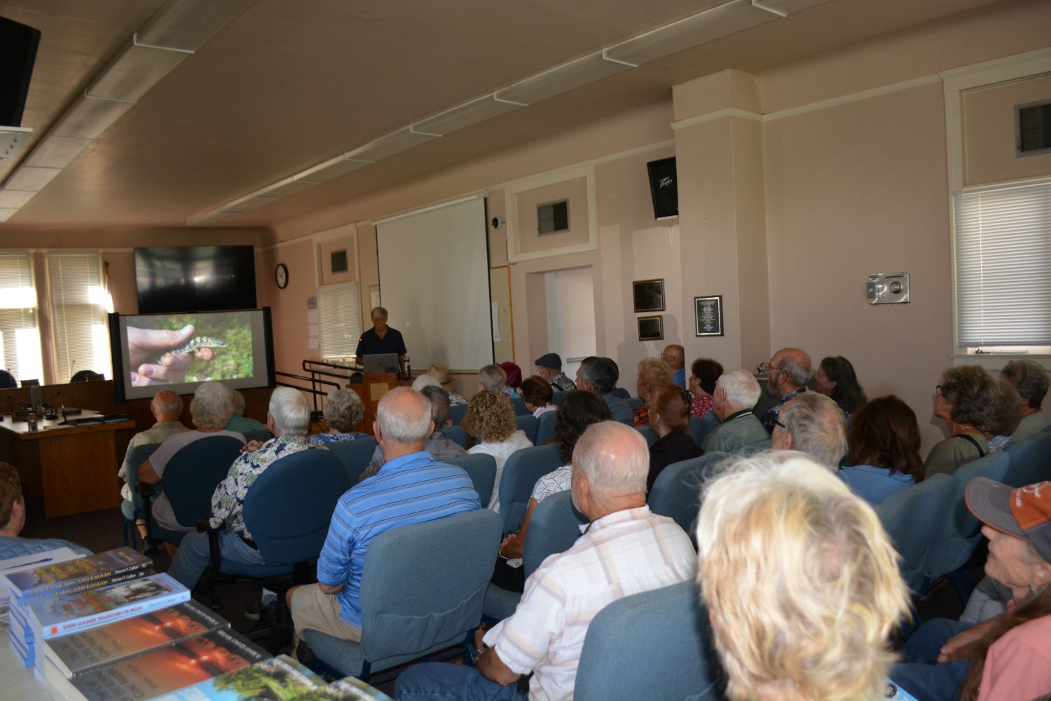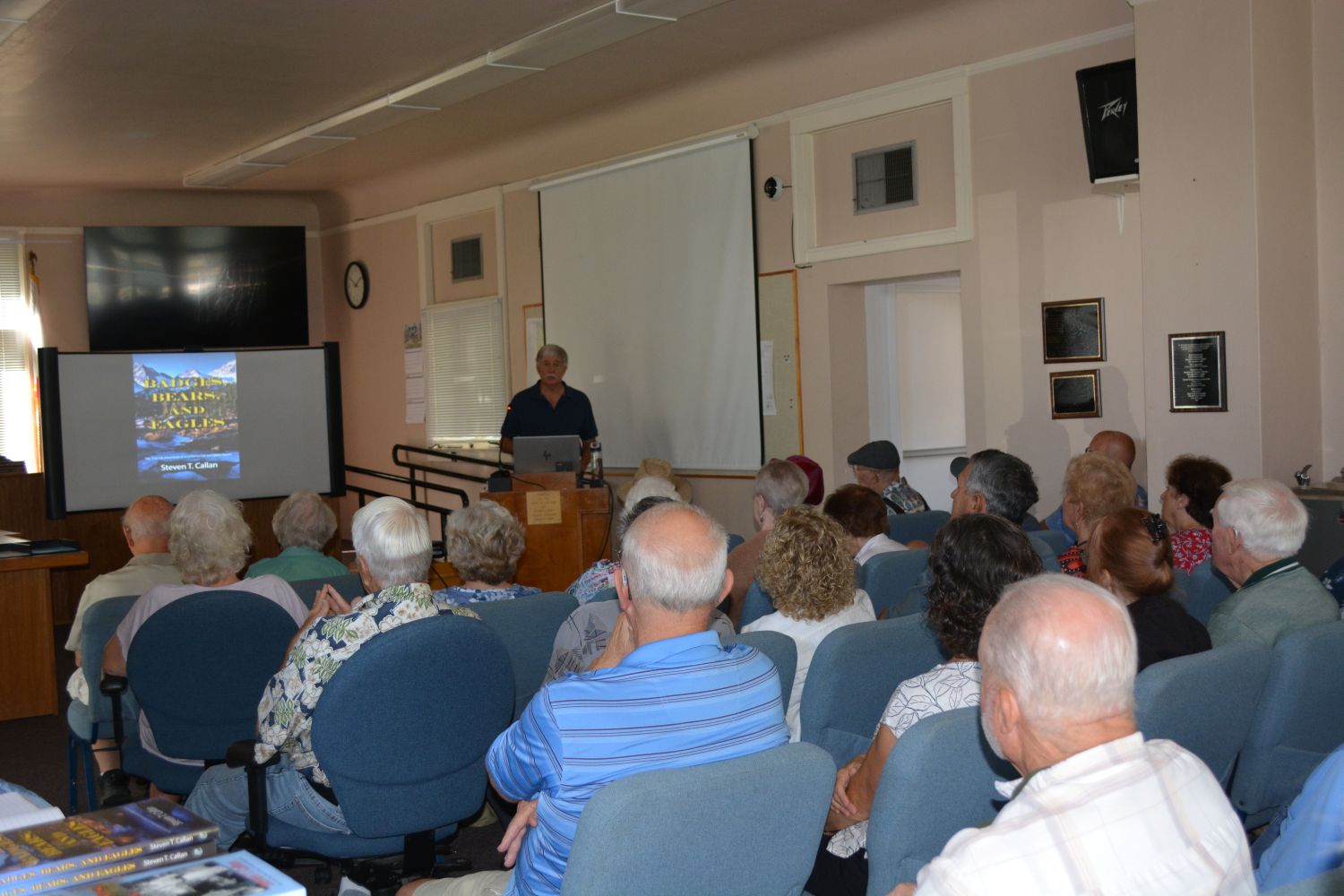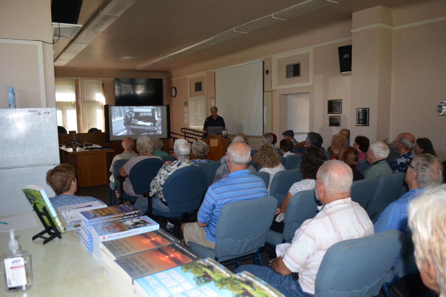 Thanks to prior promotion by Gene Russell, Jody Meza, Kathy Callan, and Ron Anderson, writer for the Sacramento Valley Mirror, the historic building was filled to capacity before I began my program at 10:00. Jody and Gene each gave me glowing introductions. Gene surprised everyone by reading a few heartwarming words from my old friend and classmate John Friesen. The program came off with flying colors, and people from Orland, Chico, and the surrounding area were still coming in during the book-signing period that followed.